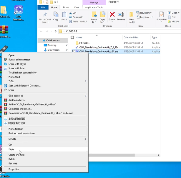 Bước 6: Sau khi hoàn tất cài đặt. Các bạn quay trở lại thư mục giải nén và chọn Copy file CLO_Standalone_OnlineAuth_x64.exe và Paste ở thư mục cài đặt phần mềm.