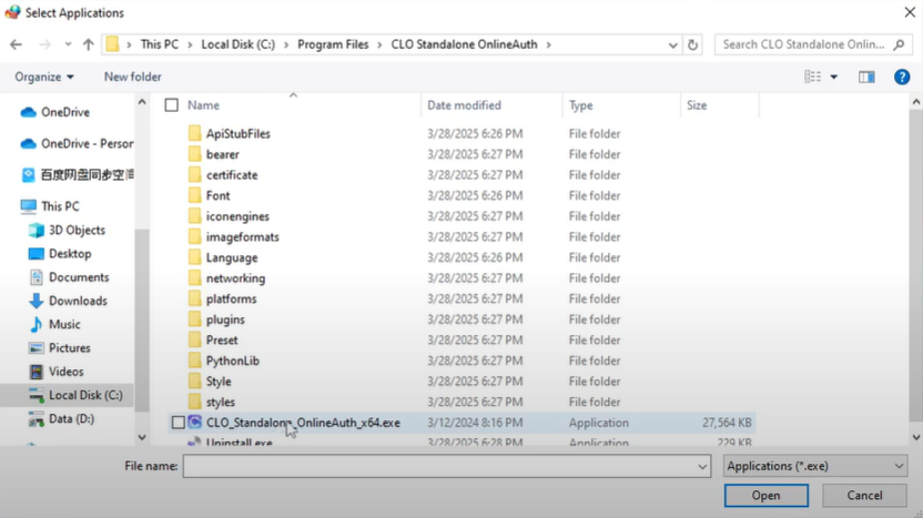 Bước 10: Tìm theo đường dẫn và chọn CLO_Standalone_OnlineAuth_x64.exe